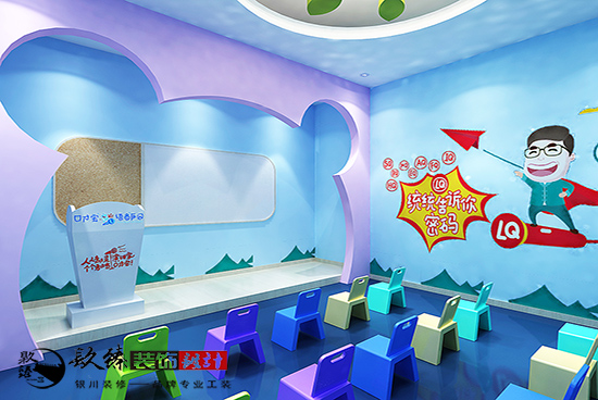 銀川裝飾公司|口才寶商語(yǔ)樂(lè)園整體的墻飾內(nèi)容與形式的布置,不是單獨(dú)的一面墻,一個(gè)空間,這種表達(dá)方式,很容易割裂孩子們的思維、想法,而且內(nèi)容比較單調(diào),不利于孩子們成長(zhǎng)。可以利用孩子們熟悉的形象、色彩、形式、空間等多種造型,讓整體布局協(xié)調(diào)一致。