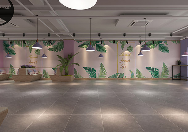 暖暖的春日,一片片樹葉散落在空中,形成一幅溫馨洋溢的場面,這就是墻面壁畫裝飾所給人帶來的意境。配上淡色系的原木卡座,只能是為本就清新的風格增添了一抹風采。室內(nèi)空間內(nèi)設計師還添加了少部分的鐵藝隔斷,金屬質感的材質搭配會為整體空間增添一些活力與時尚感。私人定制的吊燈也是和整體空間色彩互相映襯,毫無違和感。
