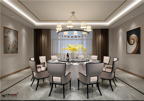 在基礎(chǔ)的硬裝設(shè)計(jì)中以木質(zhì)與石材相結(jié)合,采用現(xiàn)代的設(shè)計(jì)弧線的處理手法刻畫(huà)生出一個(gè)具備文化性、象征性、裝飾性的空間,空間中的藝術(shù)表達(dá)手法,除了在硬裝部分設(shè)計(jì)師使用現(xiàn)代手法,在軟裝配飾上還使用了一些藝術(shù)品烘托整體空間氛圍。追求設(shè)計(jì)極盡美感的豐盈,同時(shí)又獨(dú)具韻味,不失簡(jiǎn)約精致的意境,是整體項(xiàng)目操作的思路。統(tǒng)一于都市主義風(fēng)尚中的,還有輕奢質(zhì)感的專心打磨,同時(shí)跳脫桎梏的前衛(wèi)、自由、張力。一樓大廳用餐區(qū)沒(méi)有過(guò)于搶眼的造型,也沒(méi)有濃墨重彩的渲染,而是以最經(jīng)典的現(xiàn)代設(shè)計(jì)筆觸,令金屬、皮革、石材等所有元素協(xié)調(diào)相處,并選用帶有高級(jí)感的中性色、溫馨舒適低調(diào)奢華,使整體空間具有很強(qiáng)的飽和度。