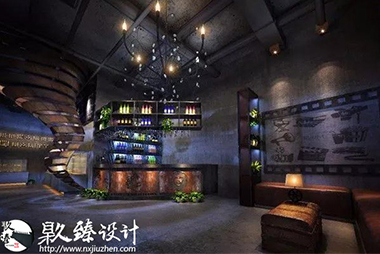 光看圖片暗色系的裝飾給人以不真實的感覺,用清水混凝土、鋼、原木等自然物架構(gòu)打造內(nèi)部空間,局部綠植的點綴,冷暖色調(diào)的反差對比,給人以夢幻的感覺,并營造出復古懷舊的浪漫氣氛,也更好地強調(diào)了設計的主題。粗糙的水泥抹平地面是粗狂的,然而藍紫色燈光又給了這片空間一種妖艷的視覺感受。