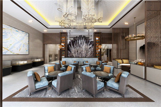 總接待臺(tái)是整個(gè)售樓處比較核心的區(qū)域,這里是人們進(jìn)入售樓處后最先看到的地方。在這里可以做一個(gè)有關(guān)項(xiàng)目的形象墻,能讓消費(fèi)者第一時(shí)間對(duì)樓盤有大致的了解。同時(shí)我們可以利用寬敞空間做一個(gè)做足夠大的造型,用以展示售樓處的形象,總接待臺(tái)的高度不要太高,否則會(huì)給人不宜接近的感覺,不利于客戶體驗(yàn)和樓盤的銷售。