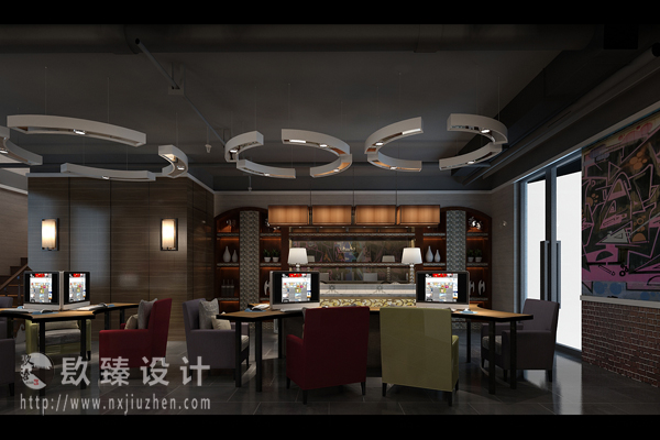 同時,設(shè)計師在網(wǎng)咖功能分區(qū),以人性化的服務(wù)理念為主,旨在為大家打造愉悅空間,設(shè)計師希望通過不一樣的風(fēng)格,為大家?guī)硐硎芎褪孢m的空間。在燈飾上,設(shè)計師采用富有個性的燈,也讓整個網(wǎng)咖看起來富有個性。