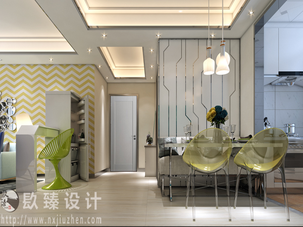 整個裝修案列中,整體以簡潔裝飾為主,通過色彩的搭配,營造一種歡快跳躍的感覺。整體的裝修顏色大多采用黃色、白色等,這類色彩飽和度較高,大膽的配色運用,讓空間具有一種跳躍感,也很好的彰顯出主人的個性化品味。