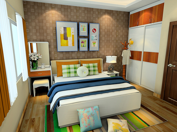 3.約有1/3的臥室墻面會被家具所遮擋,因此,墻壁裝飾宜簡單,可在床頭的上部擺放一些個(gè)性化的裝飾品,但選材應(yīng)符合裝修整體色調(diào)。如果想要烘托臥室氣氛,可選用墻紙或涂料,但顏色花紋應(yīng)根據(jù)自己的年齡與喜好來選擇。