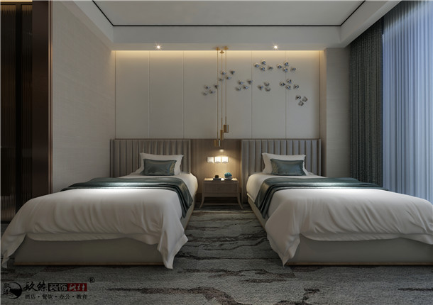 本案酒店客房不銹鋼墻壁掛件凸顯出現(xiàn)代時尚的質(zhì)感,增添一份低調(diào)的奢華。樹脂水晶墨綠色的燈座與同色系的床頭背景墻顏色相呼應(yīng),使整個空間變得和諧。床頭背景墻掛飾,全銅弧形燈臂,造型流暢,簡約且耐看。背景墻有了鋁合金掛飾的點綴,不再單調(diào)。