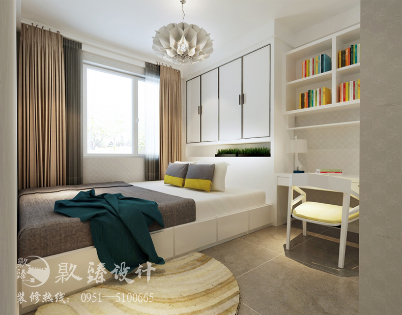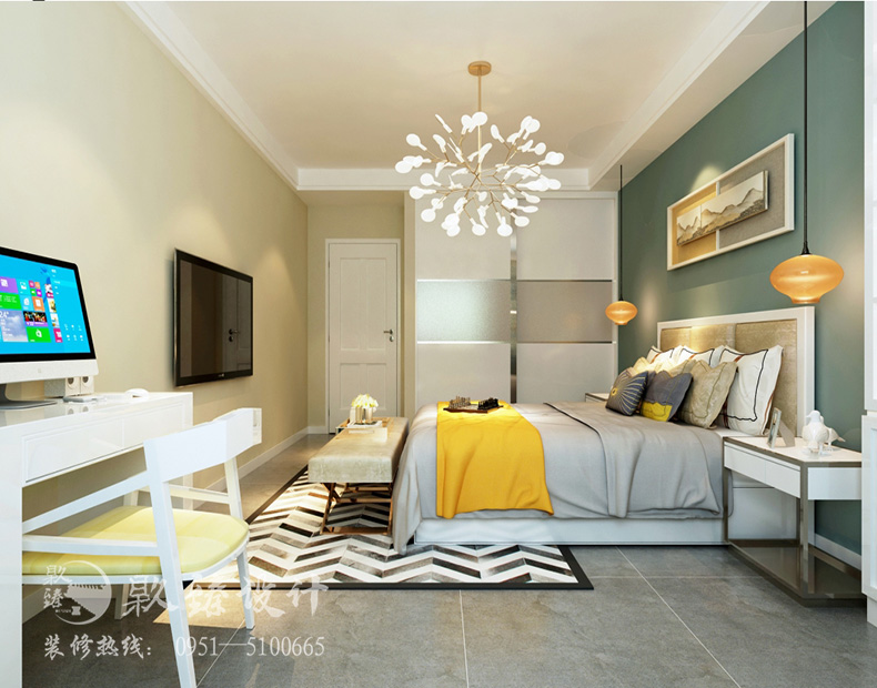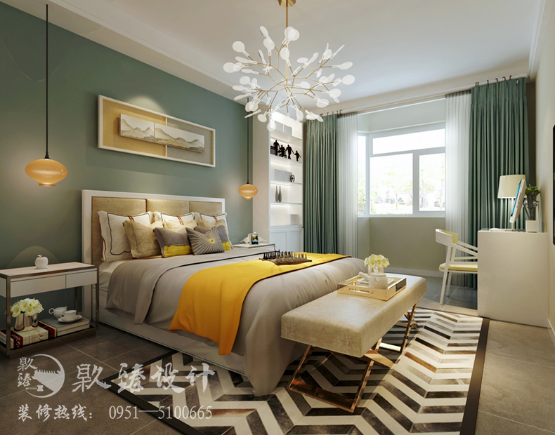 銀川裝飾裝修|镹臻裝飾|家裝裝修高鳳林設(shè)計的北歐風(fēng)格的家裝以淺色系為主湖藍(lán)色背景墻作為點綴。使整體空間很干凈,整潔。書房中用了近幾年非常流行的榻榻米,主臥室也很溫馨,色彩搭配合理,用豆沙綠作為搭配色,給人一種輕松的感覺。造型燈飾的搭配也是北歐風(fēng)格設(shè)計中的重中之重。銀川裝飾裝修|镹臻裝飾|家裝裝修案例中所有的燈飾都是設(shè)計師高鳳林親自挑選,根據(jù)整體風(fēng)格來進行最合適的搭配的。