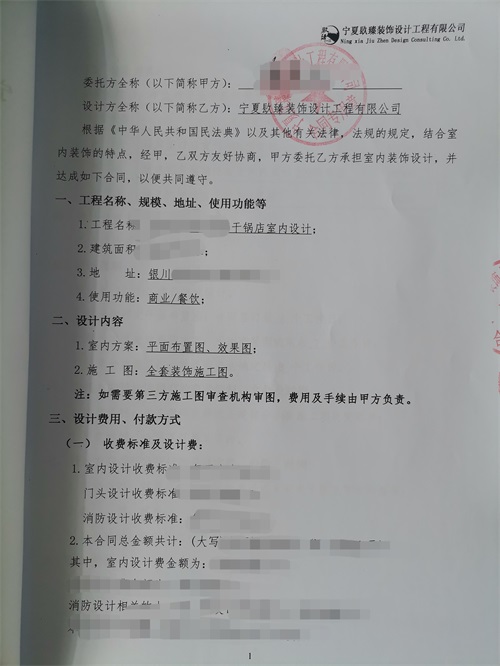 感謝客戶信任,銀川餐廳設計簽約镹臻裝飾 |