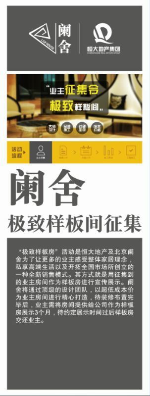 闌舍將會(huì)以“極致樣板間征集”為主題,讓越多的業(yè)主享受整體家居理念、私享高端生活。并且通過頂級(jí)的設(shè)計(jì)團(tuán)隊(duì),以超低成本價(jià)為業(yè)主房間進(jìn)行精心打造,待裝修完畢后,業(yè)主只需將房間提供給公司作為樣板房展示3個(gè)月,待約定展示時(shí)間過后樣板房交還業(yè)主。