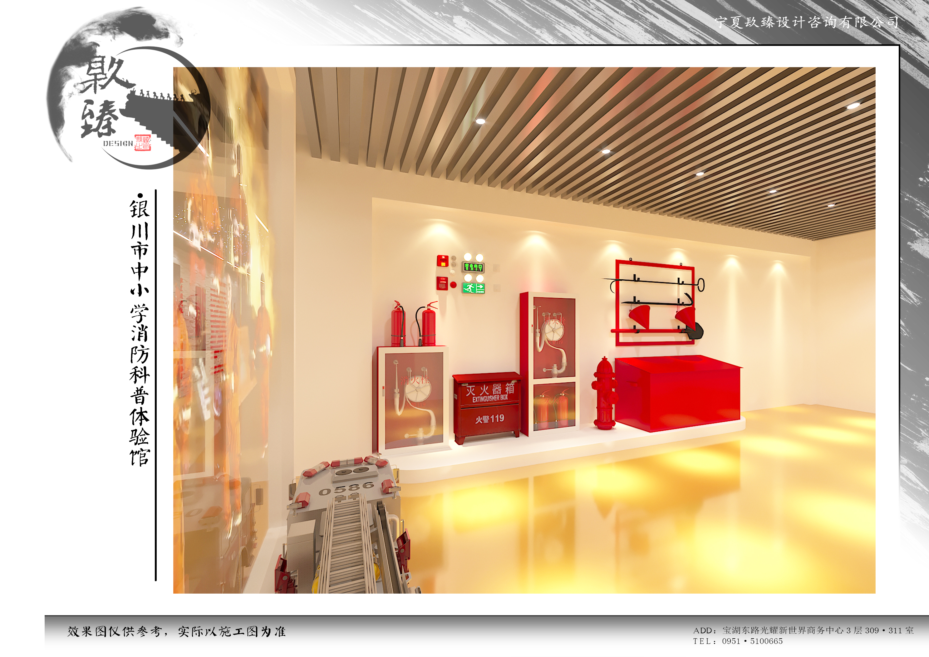 銀川中小學(xué)消防科普體驗(yàn)館是設(shè)計(jì)師楊芮(目前就職于寧夏镹臻裝飾設(shè)計(jì)工程有限公司)的代表作品,這項(xiàng)設(shè)計(jì)方案以其超前的思維和巧妙的構(gòu)造能力立刻被采納為該市最重要的針對(duì)于中小學(xué)生的科普展覽展廳方案。