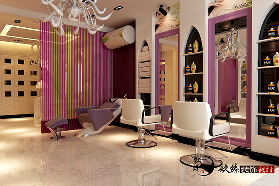 顧客比較喜歡靚麗,溫暖,青春的顏色,最后使用了香芋紫色作為案例設(shè)計中的主打色調(diào)。鏡子是美發(fā)店中不可缺少的,怎樣可以把每一面鏡子合理的所連接到一起?是需要 設(shè)計師專業(yè)手法來進行搭配的。