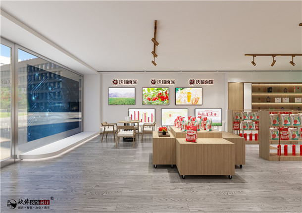 在本展館中設(shè)計(jì)師結(jié)合品牌發(fā)展歷程與發(fā)展理念,裝修色彩多以正紅色為主,原木色為點(diǎn)綴,展現(xiàn)出現(xiàn)代質(zhì)感與傳統(tǒng)理念并存的裝修風(fēng)格。頂面石膏板黑色線條封邊吊頂充分的延伸了整體空間視覺(jué)感,展館左側(cè)墻體地球的圖案寓意著寧夏的枸杞品牌走出了中國(guó),邁向了世界。