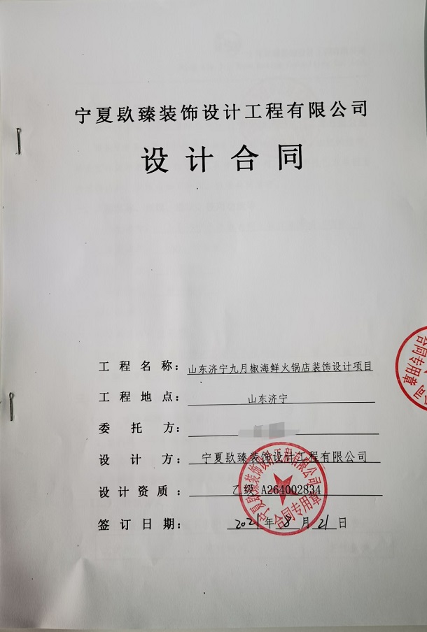 銀川設(shè)計公司恭喜山東九月椒火鍋店設(shè)計裝修簽約镹臻工裝