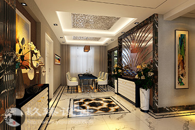 在客廳的設(shè)計(jì)中,主要運(yùn)用大理石地磚、壁紙以及石材掛畫(huà),再配合簡(jiǎn)潔舒適的咖啡色布藝沙發(fā),組合搭配了獨(dú)特而又時(shí)尚的風(fēng)格,并且與黑色的時(shí)尚茶幾再配合中國(guó)風(fēng)刻花電視背景墻,讓藝術(shù)與中國(guó)風(fēng)相互結(jié)合的恰到好處且十分凸顯個(gè)性,并且在奇特造型的吊燈和魚(yú)鱗狀的造型天花上,以其色彩亮麗的色調(diào)設(shè)計(jì),使得整個(gè)客廳看起來(lái)時(shí)尚前衛(wèi),充滿(mǎn)大氣!