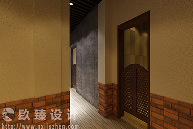 本案例的主要元素包括:木質(zhì)元素、文化磚、藝術(shù)涂鴉、玻璃鏡、真石漆、壁紙等相互配合,給西北燒烤帶來(lái)全新而又充滿新穎的空間環(huán)境,并且呈現(xiàn)出完全不同于其他風(fēng)格的主題感覺(jué)。而且在顧客用餐的位置上使用木質(zhì)屏風(fēng)隔斷,期間的框條夾層運(yùn)用藍(lán)色與紫色玻璃鏡穿插,不但能讓空間具有隱私的感覺(jué),還能在有色玻璃的渲染下,體現(xiàn)空間不一般的穿透能力。