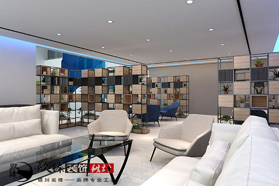 在本項目燈帶的選擇上,設計師取了中間值,純藍色,這種顏色讓人聯(lián)想到抽象、未來,很符合科技行業(yè)和銀川辦公室裝修|銀川辦公室裝修設計|镹臻裝飾和產(chǎn)品需要表達的技術性和可靠性,看來在色彩學上,我們的設計師是非常專業(yè)的了。在顏色的設計上,是非常符合該項目的行業(yè)性質(zhì)。