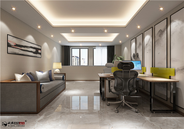 公共辦公區(qū)是辦公室的心臟,也是整個裝修設(shè)計的重點。設(shè)計裝修時不僅需要注重美觀性,實用性,整體性在整個裝修設(shè)計上更是重中之重。更尤為重要的是辦公區(qū)的燈光,既不能太強又不能太弱。 因此在設(shè)計色彩上主要以白色為基調(diào),頂部采用簡單的吊頂,并用現(xiàn)代風格掛畫來裝飾,不僅使得整個空間顯得開闊明亮,還讓辦公空間多了一份文藝氣息。