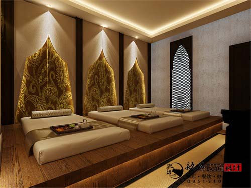 現(xiàn)代都市生活節(jié)奏越來越快,人們的生活壓力越來越大,養(yǎng)生保健也逐漸被人越來越重視。足療是一種很流行的保健形式,采用足底按摩的形式,讓人們疲倦的身體得到完全放松,對人的身體健康有著很大幫助。今天給大家?guī)淼氖翘┦金B(yǎng)生會所設(shè)計(jì)案例。在設(shè)計(jì)中,我們搜集了大量泰式傳統(tǒng)裝飾素材,并對這些素材進(jìn)行整合再創(chuàng)造,揉入現(xiàn)代設(shè)計(jì)理念的同時(shí)保持了原汁原味的泰國風(fēng)情,力求為客人打來最純粹的泰式感受。這種回歸自然、原滋原味的生活,近年來以其獨(dú)有的魅力和熱帶風(fēng)情也深受人們的喜愛。大廳以深色系的空間底色作為背景,與空間里跳脫的米黃色棕色等陳設(shè)品形成調(diào)和與均衡,地面以粗糲的顆粒感表達(dá)溫馨寧靜的輕松氛圍。干凈的線條,柔熙的燈光,溫馨明亮,平衡節(jié)制。人行至此間,于舒適沙發(fā)小坐,品一茗清茶,悠閑自得。在注重傳統(tǒng)的同時(shí),也創(chuàng)造了優(yōu)雅的品味。足浴按摩室設(shè)計(jì)以現(xiàn)代之形續(xù)寫傳統(tǒng)意境,以時(shí)尚之物訴說高雅品味,簡單的線條搭配光影的變化,營造有張力的色彩氛圍。整體選用純天然材質(zhì),通過對天然材質(zhì)的運(yùn)用使空間散發(fā)著濃厚的自然氣息。色彩斑斕的搭配,在燈光下閃耀著華麗熱情的光芒,制造出異彩紛呈的異域國度風(fēng)情。